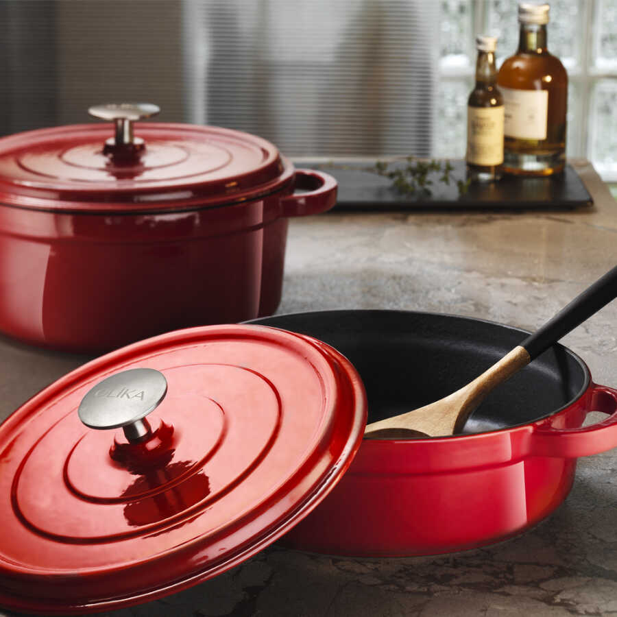 Olika Iron 24Cm Demir Döküm Derin Tencere Kırmızı